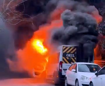 Yanan servis minibüsünün şoförü Hidayet Güven, “Arabayı park ettim, yukarı çıktım. Komşular ‘araba yanıyor’ diye haber verdi. Araba cayır cayır yandı” dedi.